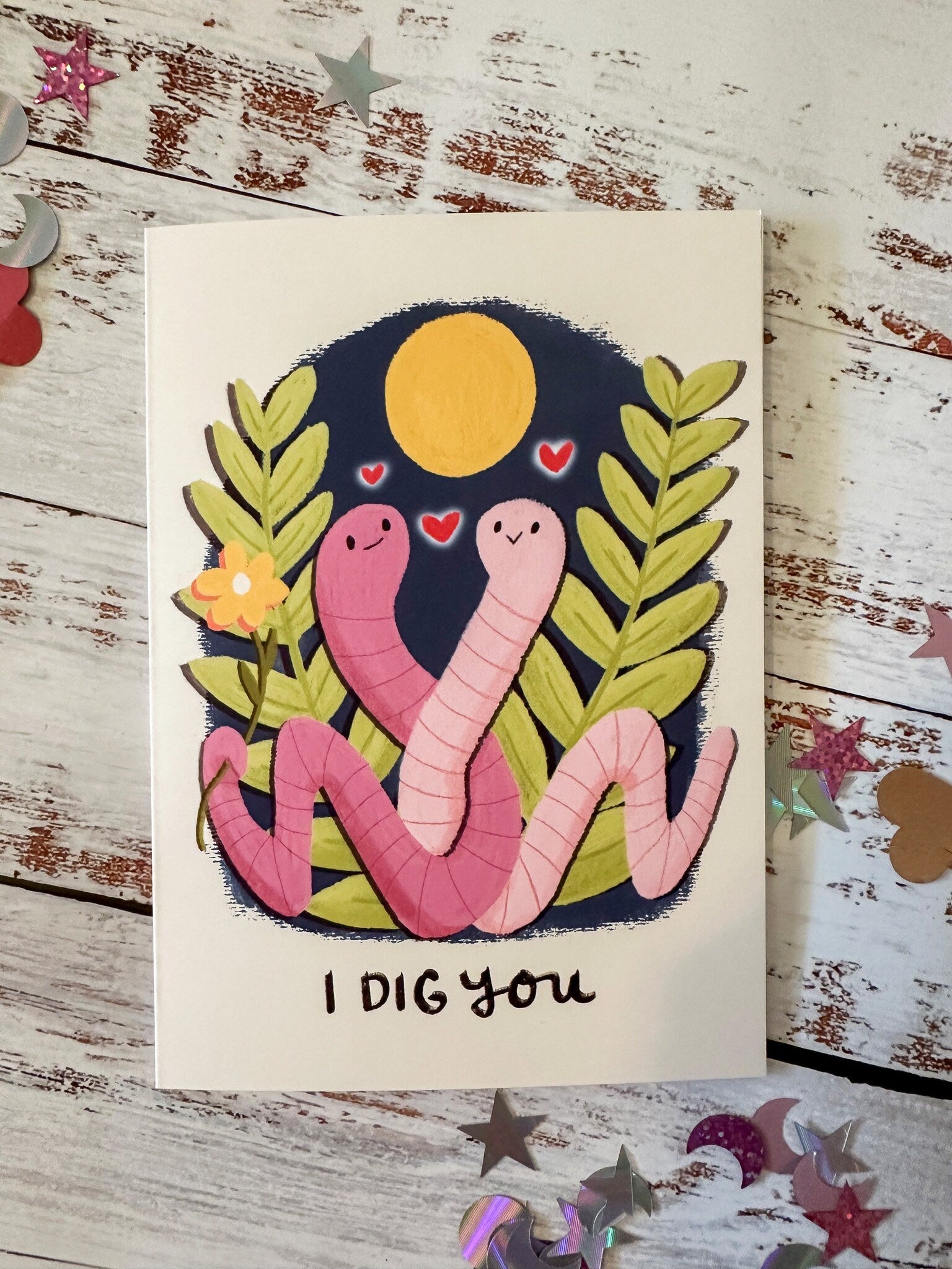 Funny Valentine's Day Card "I Dig You" Worms, Cute Valentines Card for Gardener, Farmer, Valentines Day card for Her, Him, Friend or Child