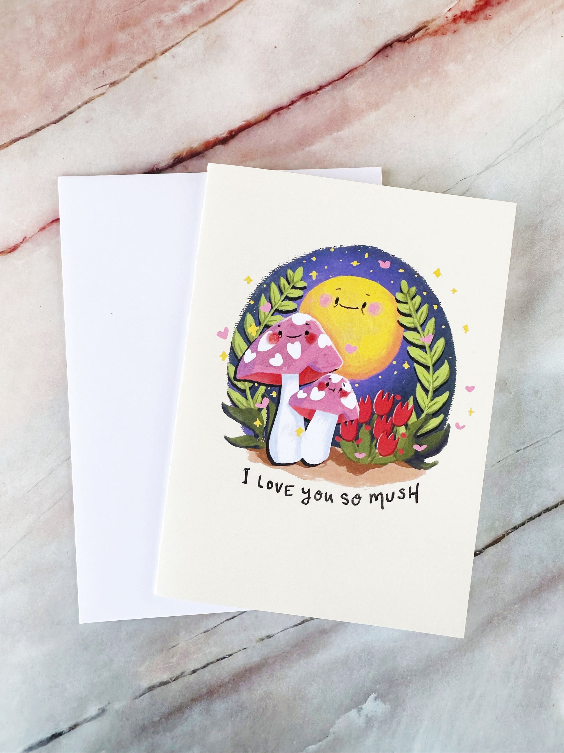 Mushroom Valentine's Day card "I Love You So Mush", Cute Valentine's Day Card for Her, Him, Child or Friend, Unisex LGBTQ+ Valentine Card